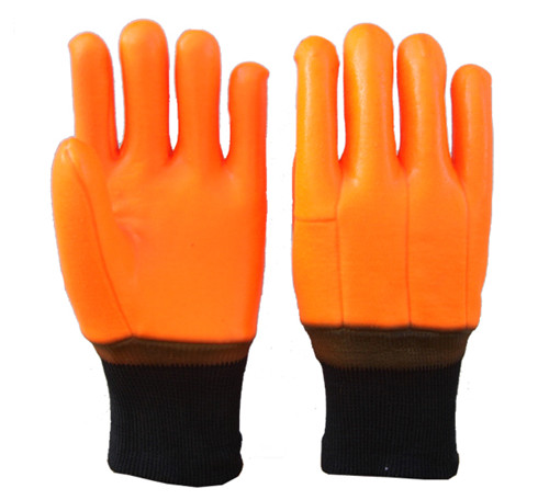 名称:荧光pvc浸胶手套、海绵复合布内衬 砂面 黑罗口 防寒手套